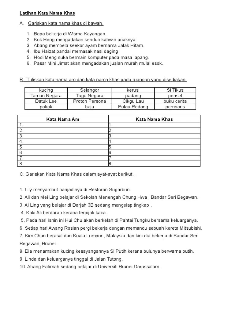 Latihan kata nama am dan kata nama khas tahun 3. Year 1 year 5 year 4 year 2 year 3 kata nama am. Interactive worksheet latihan buku aktiviti bm tahun 3 ms 6. Kata nama khas worksheets and online activities. Latihan 1 kata nama latihan 2 kata ganti nama latihan 3 kata kerja transitif latihan 4 kata kerja tak. You can find and download the .