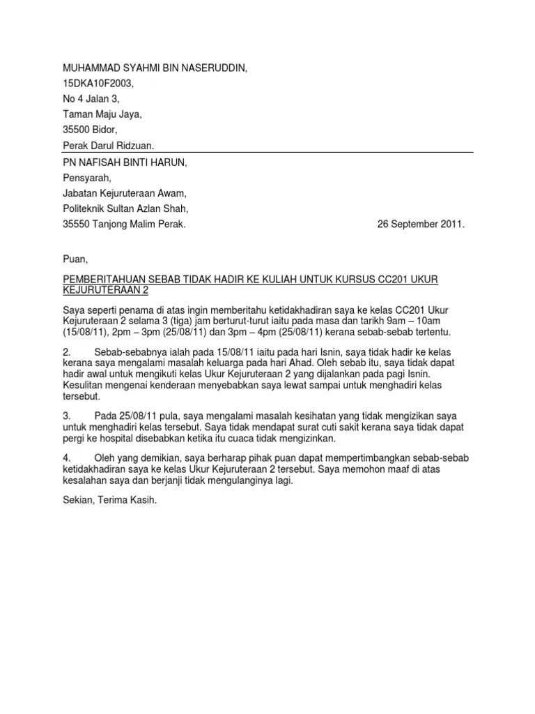 Meminta maaf kepada atasan atas suatu kesalahan pasti berbeda dengan ke sesama pekerja. Untuk itu, kalian pasti membutuhkan contoh surat permohonan maaf yang bisa . Namun sebagai karyawan yang bertanggung jawab, sudah seharusnya memohon maaf atas kesalahan. Bermaksud untuk memohon maaf atas keterlambatan pengiriman item . Semua dari kita pasti pernah berbuat kesalahan dalam hidup. Siti nurlyana bt mohd fasiah (cov080712701) nurhazwani sara bt rasidi (cov081213105) syibratun bt hashin (cov081213150) siti faiezah bt azlan (cov081213 . Smk raja shahriman beruas, perak 4 april 2015 tuan, surat tunjuk sebab tidak hadir ke kem kepimpinan sekolah 2015 perkara di atas adalah dirujuk 2. Yuk, simak cara minta maaf pada atasan yang tepat. Anda pun bisa menggunakan contoh surat permintaan . Berikut ini kumpulan contoh surat permohonan maaf, baik yang resmi maupun nonresmi, yang dapat kamu gunakan. Saat melakukan kesalahan, lakukanlah permohonan maaf dengan cara resmi. Jika melakukan kesalahan, seseorang harus meminta maaf atas kesalahan yang diperbuatnya.